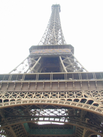 | ご存知エッフェル塔。1789年のフランス革命からちょうど100年目にあたる、1889年に行われた第4回万国博覧会の時に作られました。設計は、ジョルジュ・エッフェル。工事にかかった期間は794日だそうです。 高さは320m。展望台が3ヵ所あります。 4つの脚それぞれから上に昇るエレベータがあります。真ん中の展望台までは、斜めにあがっていきます。そして、一番上の展望台に昇るには、エレベーターを乗り換えないといけません。とりあえず、真ん中の展望台まであがってみました。(44F=750円ぐらい。) ちょうど真ん中の展望台の下に「AN 2000」(2000年)と電光掲示板に表示されているのが見えるでしょうか?夜だともっときれいに見えるんでしょうね。 この搭の計画が発表された時には、「見事な金物、まことに哀れな大燭台、難破と絶望の標識灯」とか、「鉄の階段で出来た痩せてのっぽのピラミッド、醜悪で巨大な骸骨」などと、散々な批評をされたそうです。100年以上たった今も毎日長〜い行列の観光客が押し寄せることになろうとは、予想もつかなかったのでしょう。 |
