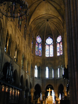 | 大聖堂の内部。 天井の高さを強調させるような、アーチ型の天井が、ゴシック様式の特徴です。この天井までの空間が広いということが、荘厳な雰囲気を醸し出しているような気がします。 |