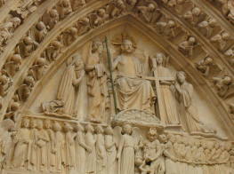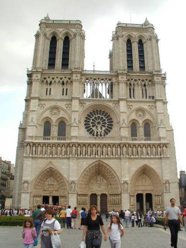 | ノートルダム大聖堂(司教座教会)。 セーヌ川にあるシテ島にあります。 1163〜1345年にかけて建造されました。 「ゴシック様式」と呼ばれる建築様式で12世紀半ばからパリを中心に広まったそうです。 確かに、このパリのノートルダム大聖堂以外で、見た目も良く似た教会を写真などでもよく見るような気がします。 大都市にある教会に多い建築だそうで、荘厳なミサを行い、キリスト教徒の中心的な意味合いもあり、また大都市のシンボル的な意味合いもあったそうです。 この大聖堂の前には、かなり広めの広場になっています。ミサに訪れるキリスト教徒達を迎え入れるためだけではなく、ここで「聖史劇」なども演じられたそうです。 モネのノートルダムの連作。モネはこの広場のどこかで椅子に腰掛け、日差しに表情を変えるノートルダムを描きつづけていたのでしょうか? |