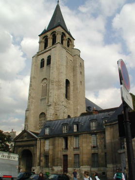 | サン・ジェルマン・デ・プレ教会。 もともとは、6世紀に立てられた教会でしたが、その後、ヴァイキングの襲撃に4回も遭って破壊されてしまい、今の建物は、1164年に作られたものだそうです。 「ロマネスク様式」という建築様式です。 装飾もあまり華美ではなく、石造りのどっしりとした雰囲気がありますね。 「サン・ジェルマン・デ・プレ」というという名前ですが、「サン・ジェルマン」というのは、パリで有名な司教の聖ジェルマンの名前から取ったそうです。(そういえば、こんな名前のパン屋さんがあるけれど、どういう由来なんだろう??) そして、「プレ」は、草原という意味で、昔、この辺りはセーヌ川に沿って草原になってい狩猟場だったそうです。 |