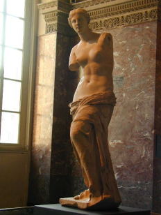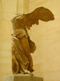 | おそらく誰でも知ってるこれが「ミロのヴィーナス」やっぱり人が一番多くいましたね。 | こちらも誰もが一度は見た事のある「サモトラケのニケ」階段を上がった真正面にあるので、記念撮影をしてる人が多かったです。 |