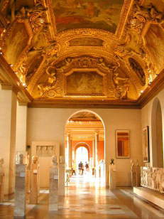 | オペラ座もそうでしたが、ここルーブル美術館も、展示してある美術品もさる事ながら、展示をしている空間自体の素晴らしいこと。さすが、歴代のフランスの王の宮殿というだけあって、艶やかな空間です。 | |