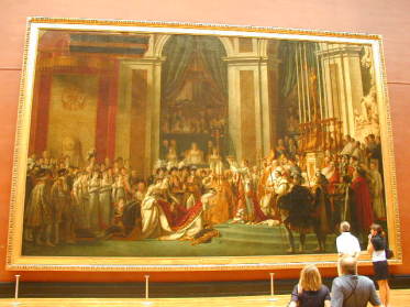 | 「メデューサ号の筏」(ジェリコー作 1819年) | 「ナポレオン一世の戴冠式」(ダヴィッド作 1807年) 人の大きさと比べてどれだこの絵が大きいかお分かりいただけるかと思います。621×979p(!) |