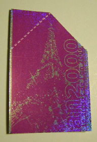 | エッフェル塔の入場券。 an2000(2000年)と書いてあります。エッフェル塔の絵が描いてあるのがお分かりいただけるでしょうか?紫色でキラキラ光ってます。 |