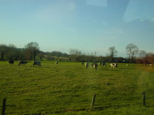 | 途中では、こんなにのどかな景色が広がっています。牛も沢山見かけました。カマンベールチーズで有名なカマンベール村も、この近くにあります。 | |||