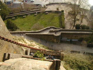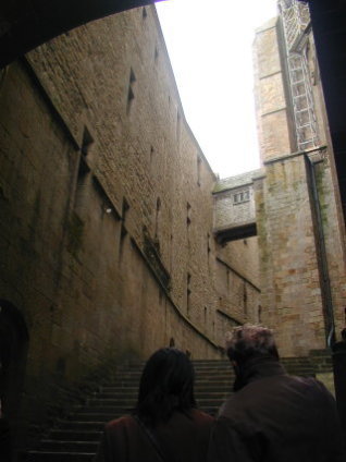 | モンサンミッシェルの境内(?)母は「江ノ島みたい。」と言ってました。確かに、途中までは、お土産やさんがあったり、有名な「プーラールおばさんのオムレツ」のお店があったり、クレープリーも沢山ありました。 | |||