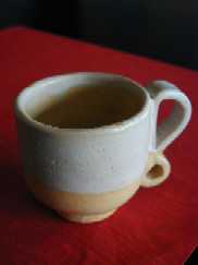 陶芸を習い始めてから、比較的早い時期に作ったコーヒーカップ。形を作る時には、いろいろなやり方があるのですが、これは、「削り」といって、彫刻刀のような器具を使って作ります。