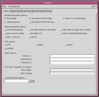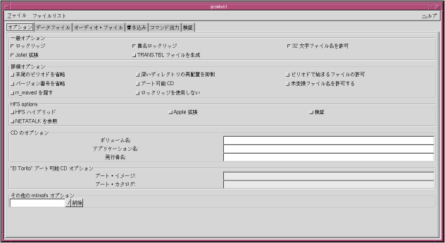 フォントを変えてもあまり効果が期待できない場合もあります。下記は、cdrecordのフロントエンドである、gcombustです。国際化しているので、難なく日本語表示できているのは申し分ないのですが、あまりに間延びし過ぎてしまい、1280*1024の解像度が必須になってしまいます。