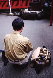 | 箱根神社では、みんなが今回使用した機材も撮りました。 まず、向かって左側の上下ふたつはyasuさんのバッグです。 メインにCONTAX RTSU、サブにCONTAX 159MMを使用 していました。レンズはいろいろありすぎて忘れました。。。 が、下に移っているひときは大きいのありますよね、わかる ヒトにはわかる!!アポゾナーです。正直、中古でも諭吉 何十枚でしょう〜!!そして右上の管理人のものです。 メインはCONTAX AX、サブはCONTAX T3です。そしてそして 右下のはtashiroのものです。一人だけミノルタ使っています。 ボディはα-7、28〜70と80〜200のズームレンズはいずれも F2.8です!!金持ってます!! |