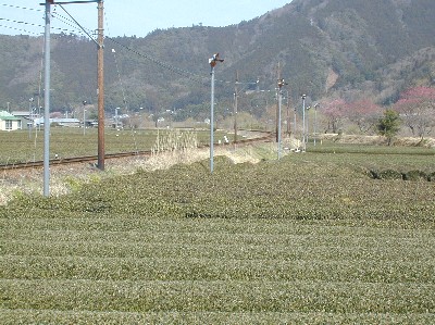 さすがは静岡!お茶どころです。一面、茶畑!なんとも長閑で風情があります。この田舎の線路をSLが駆け抜けます!気分はすっかり鉄ちゃんです?!SLが走る写真は、Galleryにありますので見て下さいね! |