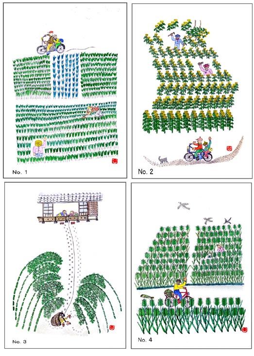 暮れに開催した四人展には、このマガジンをご覧になって来ていただいた方が大勢おりました。ありがとうございました。展覧会をしますと専門的に絵画表現技術を習得した人の何人かが評論をしてくれます。今回の四人展にも、にわか評論家が数名お出でになって批評を頂きました。しかし、弘子の絵は論外でした。批評の対象にならないのです。構図がどうの、陰影がどうの、遠近感がどうのとといっても、それらの要素がもともとないない絵なのですから批評できないのです。けれども見ていただいた大半の方からは、共感の賛辞を頂きました。なぜなのでしょう。それは技術に拘らない自由な表現に共感したからだと思います。これから絵を描きたいという方は、このやり方で行ったらどうでしょう。今回と次回、弘子の作品を配信致します。ご覧下さい。