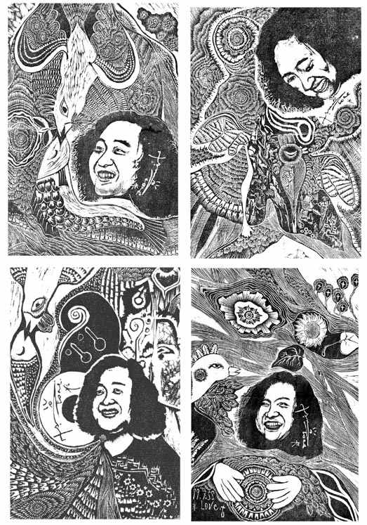 優れた人物との出会いは感動も大きいものです。テレビの音楽番組で見た人物S氏に興味を引かれたので、チケットを求め見に行きました。見たと言うより聞きに行ったのです。それから間もなく、S氏の絵画展が開かれるというので、これまた見に行きました。間もなくS氏は結婚して、お嬢さんが生まれたというニュースを聞きました。ようするに私はミーハーなんです。自分の気に入った人物に出会うとその印象を版画にしておきます。コンサートからお嬢さんの誕生まで4作品にしました。相手のいることですから、お名前は伏せておきます。どなたかおわかりですか?