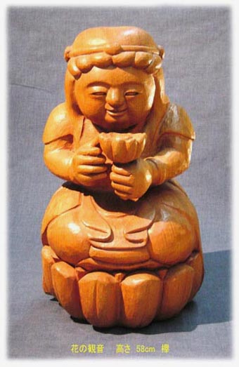 私の父は園芸業を営んでいました。園芸といっても花の種子球根等の生産が主です。今の季節になると畑いっぱいのチューリップ、ヒヤシンス、アネモネ、スイセンなど花が満開でした。戦時中は食料増産が叫ばれ花を生産する農家は白い目で見られがちでした.。肩身の狭い思いをしながら花の種子保存のために力を注いできました。振り返ってみると私たち家族は花の命によって養われてきたのです。この花々を供養するために作ったのが「花の観音」です。