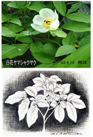 白花山シャクヤクを植え付けて5年経ちました。大株になり今年は数多くの花芽が付きました。山シャクには「白花」と「紅花シャクヤク」がありますが、「紅花シャクヤク」はあまり見かけません。昨年、「紅花シャクヤク」を友人から頂きました。今年、芽が五本出たので花芽が付くと思います。不思議なことに「紅花シャクヤク」は発芽が遅く、日向を好みます。「白花」は半日陰がよいようです。自己流の野草愛好家ですから、当たっているかどうか・・・・・・・・。そうそう、50号記念品の当選者が決まりました。U,Wさんです。お礼のメールではUWさん創作活動をしているようで、愚作をお送りして恥ずかしいかぎりです。