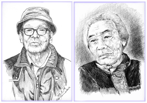 スケッチブックの終わりのページに、サイン変わりに自画像を描くことにしています。顔はその人のレッテルです。自画像を描くたびに「なんて軟弱な表情をしているのだろう。」と思います。数年前、軽井沢のギャラリーで肖像写真の大家であるK氏の展覧会を見ました。K氏に、「なぜ有名人を撮るのですか。」と尋ねると「有名になる人は顔が良い。」という答えでした。なるほど、一つのことを成し遂げた人は皆いい顔をしています。自画像を描いても耐えられる顔にしようと精進しましたが、ダメですね。・・・・・・・4月から野草シリーズを配信してきましたが飽きたでしょう。感想メールがだんだんと少なくなりました。どのくらい関心を寄せていただいているかのバロメーターになります。今回からいろいろなジャンルの作品を紹介します。飽きられないように・・・・・・・。