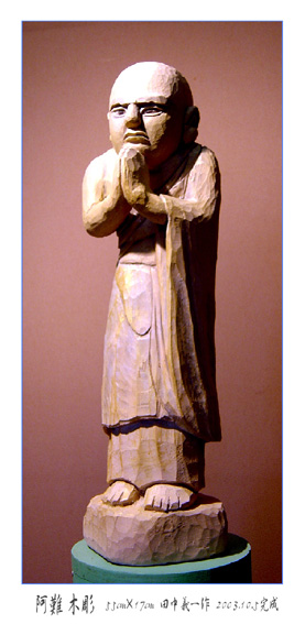 10月5日、十大弟子7人目の阿難(アナン)が誕生しました。阿難は相当の美男子だったらしいのです。どの様な顔立ちにするか迷いましたが、キリッとしたお顔にしました。阿難は釈尊の身の回りをお世話する役についていました。官房長官のような仕事です。いつも釈尊のそばについて、説法の一部始終を記憶にとどめておかなくてはならないのです。そのため後に「多聞第一」と言われるようになったのです。十大弟子に取り組んで40日になりました。少々オーバーペース気味です。十人が完成するまで、修行だと思ってやり遂げます。