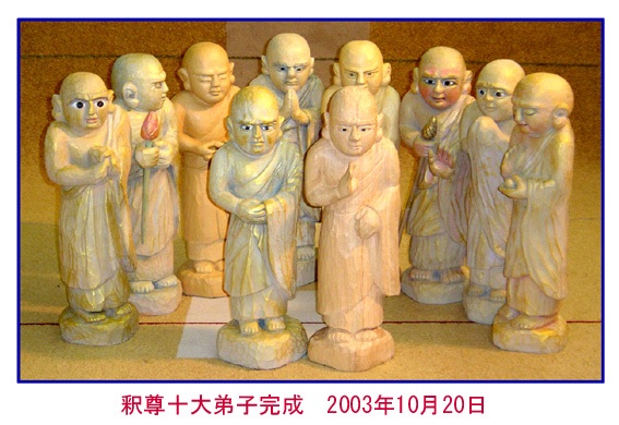 戸惑いながらも十大弟子を完成させました。作者自身も決して満足のいくものではありません。完成させた後、「これでいいのか?」と、自問自答しています。しばらく休息をとって「釈尊像」を制作してこのシリーズを完結します。お付き合い有り難う御座いました。