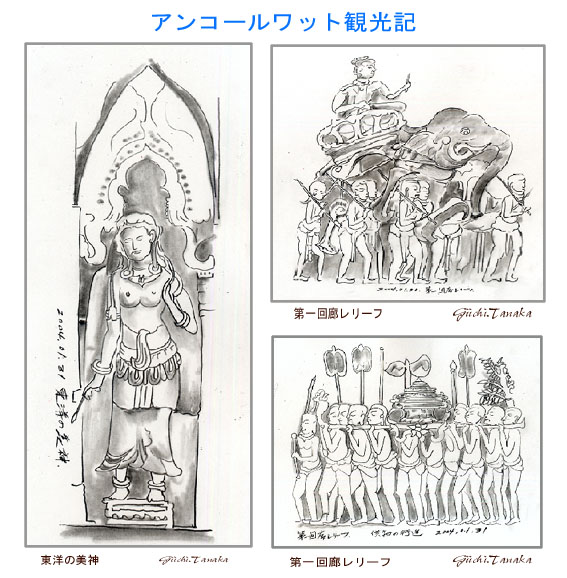 行って来ました。ビックリしてきました。アンコール・ワットの5基の尖塔の大回廊の壁面を飾る東洋の美神たちに会ってきました。興奮を抑えてジックリのぞき込んでスケッチをし脳裏に納めてきたので、暗算で描けるようになりました。美神も興味の対象でしたが、回廊を飾る浮彫(レリーフ)には圧倒されます。9世紀から15世紀にかけてのクメール人たちのエネルギーと創造力には脱帽です。