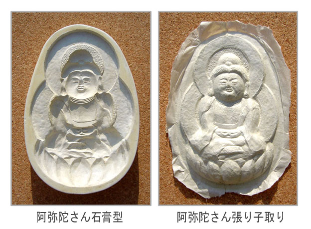 阿弥陀さんを作りました。アミダさんは数多くの佛さんのなかでも、一切の苦から救いだしてくれる力を持ったありがたい佛さんです。私の作ったこのアミダさんですか?それだけの神通力はありません。隣の子どもをモデルに作ったアミダさんですから、ほんの少し優しさを分けてあげられる位の力しか持ち合わせがありません。パネルにこのアミダさんを置き、眷属の小さな佛さんを配して曼陀羅のような作品にします。