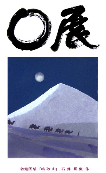 O展が無事終わりました。以前に紹介しましたが長慶氏は書家です。書はもとより、篆刻、刻書、絵画、鎧制作に至まで全ての分野に超一流の才能を持っている作家です。会場入り口の案内板は長慶氏の書にしましたが、来場された方の多くが、展示される作品を見る前に、この立看に感動していました。今まで会のタイトルに使っている円相は私の書いたものを使っていましたが、これからは、今回の立看に書かれた円相を使うことにします。