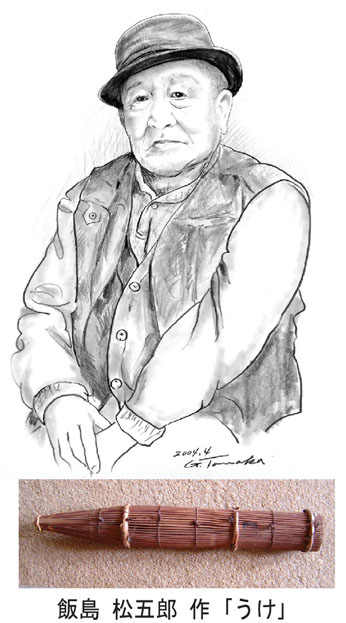 ネギ作りの松五郎ではありません。竹細工師の松五郎です。飯島松五郎氏はここ深谷地方では名の知れた竹細工師です。利根川の近くに住まい利根のことは知り尽くしている人です。鰻はここに「ウケ」をふせておく、鯰はこの網でとる、と漁の名人でもあります。竹細工師ですから魚の習性を考えて、それぞれの魚にあった「ウケ」を考案して作っています。時折幼稚園や小学校を訪問して竹細工の指導にも当たっています。最近、絵を描くことにも目覚め絵筆を取ることも多くなりました。衰えを知らない松五郎さんに乾杯です。