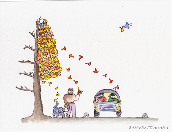 散るイチョウ (弘子画)