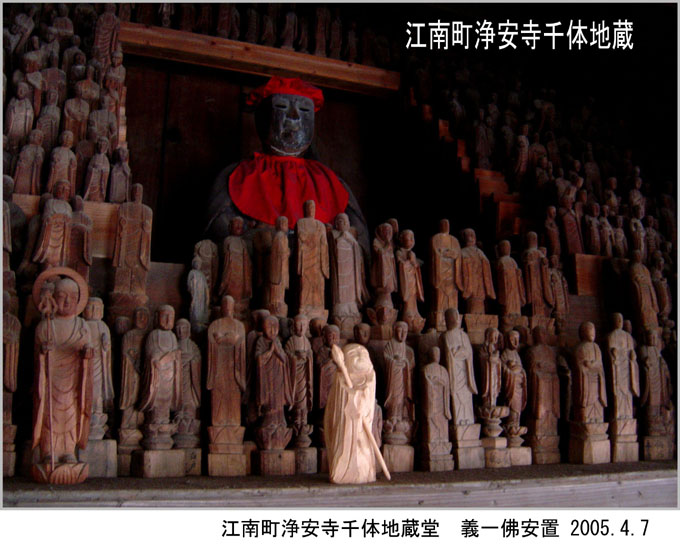 近くの江南町にある 浄安寺の地蔵堂に千体佛と呼ばれる約600体に及ぶ地蔵さんが奉納されている。最も古いものは1600年代に奉納されており歴史がある。子安・治癒・延命等の願いを込めて奉納したのだろう。4月7日は亡父の命日なので 浄安寺さんにお願いして 義一佛を安置させてもらった。
