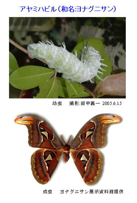 世界最大の蛾 「アヤミハルビ」の生息地 与那国島周辺を取材してきました。アヤミハビル(和名:ヨナグニサン)はヤママユガに属する蛾で 開張すると25cm〜30cmもあります。アヤミハビルは与那国の言葉で アヤミは綾のようなの意味で ハビルは蝶のことです。今の季節は幼虫が成長するときで 成虫が飛ぶ姿は見られませんでした。残念。もう一度訪ねたい地です。