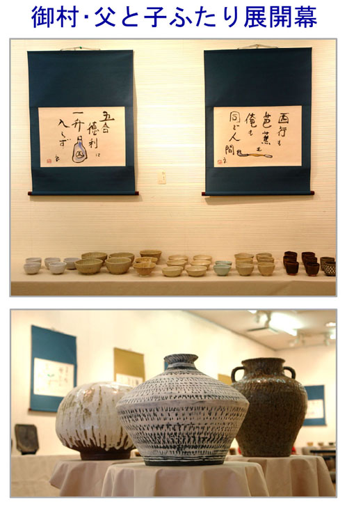 父と子二人展開幕 〔父‐茶碗・戯墨 子‐壺・雑器〕