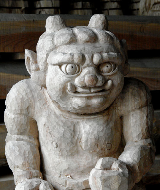 顔の造作は 他の部分がほぼ完成してから着手することにしている。ここ数日の暑さは ハンマーを振る作業は体力を消耗しすぎる。そこで やむなく手先で出来る顔作りを先にした。表情の完成が近づくと ますます 「とぼけた鬼」 になりそうだ。廃棄してしまおうかと思っていた材木の中に こんな風情の鬼が入っていたかと思うと不思議な気分になる。