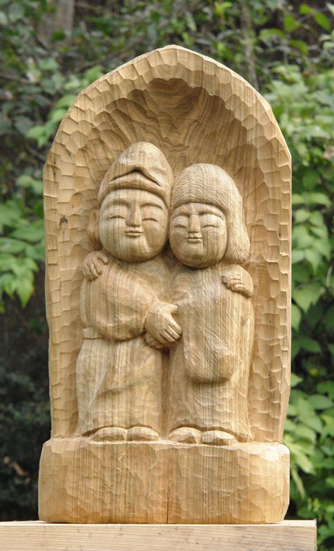 北軽井沢道祖神完成 〔木彫・山サクラ材・高さ60cm〕