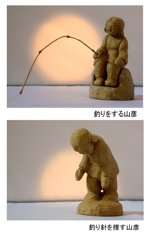 弓矢と釣竿を無理矢理取りかえっこした山彦は、喜び勇んで釣りに出掛けた。どうしたことか小魚一匹かからない。あきらめていたその時 急に竿がしなった。急いで竿をあげた。ところがプッンと糸が切れて針を取られてしまった。山彦は必死に釣り針を捜した。つづく・・・・・・