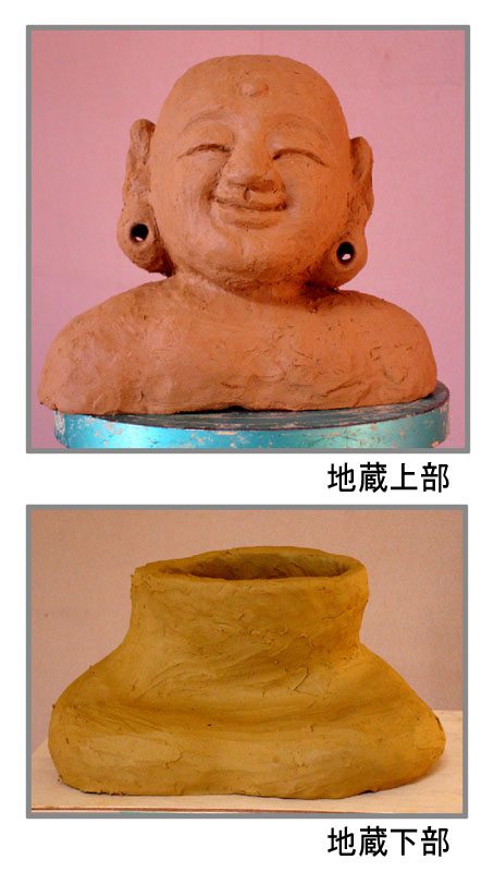 貧乏性なんです。展覧会が終わったあと しばらく制作を休もうかと思っていました。気がついて見るとまた粘土をいじっていました。大きめの地蔵作りです。高さ35cm 巾35cm位の童子地蔵です。これだけの大きさになると 上部と下部を別々に作り やや固まった時点で接合する作り方をします。完成の体形をしっかりつかんでおかないと バランスが悪くなるので慎重に作業を続けます。