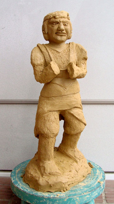 因達羅(インダラ)です。2日間で仕上げようと思いましたが無理でした。後半日手を入れると完成します。私は作像にあたって 一度完成したものには 少々気になる部分があっても 余り修正しない主義です。どんな形になろうと それが自分の精神が手を通して現れたものだからです。この因達羅も神通力がなさそうな表情になってしまいましたが これでいいと思っています。