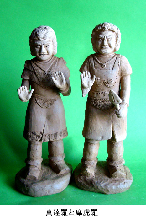十二神将の内 真達羅(シンダラ)と摩虎羅(マコラ)です。真達羅は酉 摩虎羅は申を頭に付けています。最近 制作に入ると際限なく取り組んでしまいます。走りすぎです。真達羅と摩虎羅にはブレーキ役を申しつけました。摩虎羅には「チョット休め」 真達羅には「暫く休め」の合図役をさせることにしました。