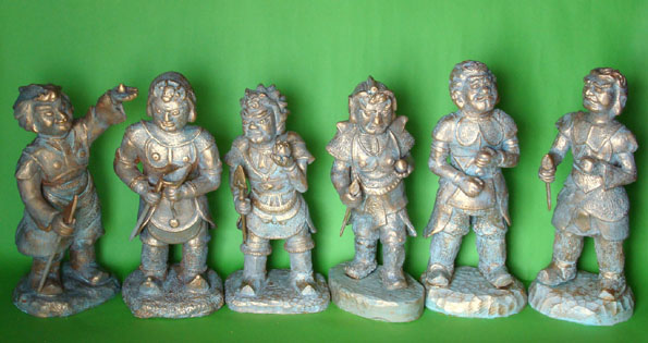 月25日に配信した影像が手違いで届きませんでした。改めて配信します。十二神将の内六神が完成しました。六神の頭上にはそれぞれ子・丑・寅・卯・辰・巳の干支がついています。私が愛用している仏像辞典の宮毘羅は子がついています。けれども 別の資料には異なった呼び名がついています。十二神将のそれぞれの呼び名は定まったきまりはなさそうです。