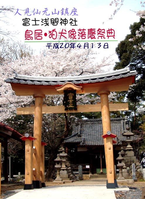 納めた 「木花開耶姫命像」と 「社号扁額」は私が刻ませてもらいまた。鳥居を施工した清水氏は
