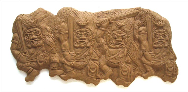 不動四態 〔レリーフ粘土成形〕
