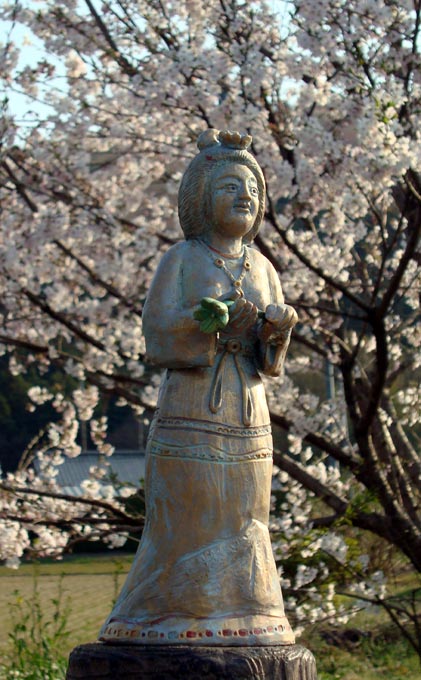 つ こっそり野外に連れ出し 記念写真を撮っています。木花開耶姫はサクラの神さ