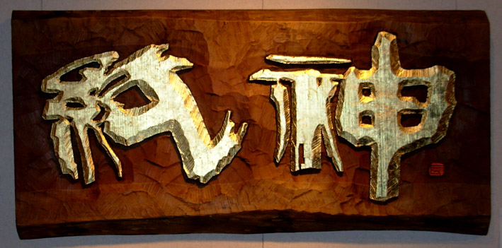 「小川は和紙の町ですから紙の神さまをほりました」と長慶先生はさり気無く言います。先生の仕事ぶりを見せてもらいますと 昔の演歌を口ずさみながら制作しています。気楽に仕事を進めています。この気軽さのどこからこのような重厚な作品が生まれるのか不思議です。