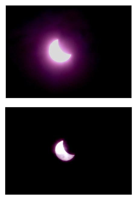 バカチョンデジカメのレンズに黒のセロハンをかけて撮影してにました。22日AM10:40頃 埼玉でも一瞬 雲が薄れ天体ショーを見ることができました。何分素人の撮影です。専門家のような映像は撮れません。ひとりで歓声を上げていました。