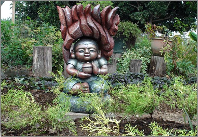 来春の野外彫刻展のために 庭の整備をしています。1区画が完成すると そこに似合う彫刻作品をおいて様子を確かめてにます。今日は「薬師童子」を連れ出してみました。太陽の光の下では 絵画や彫刻作品が貧弱にみえます。人間が作ったものは 自然には敵わないものです。