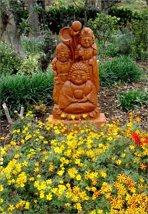 薬師三尊です。何年前に作ったのでしょう。記録がないので分かりません。それでも堅い欅材だったので 彫るのに難義したことは覚えています。体長1m10cmで体重50kgもあるので 扱いにくく展覧会には連れていきませんでした。私と同年輩の仲間も体調を崩す者が多くなったので 来春の野外展には この「薬師三尊」を主役にしようと思います。邪念の多い私が作った「薬師さま」ですからご利益は保障できません。