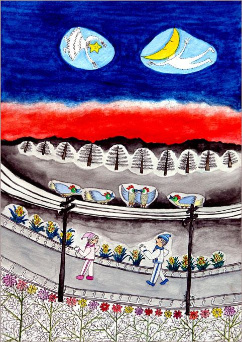 数日前月と金星が大接近しました。西空に夕焼けが残る時の美しいショーでした。家内はその情景をこのように表現しました。