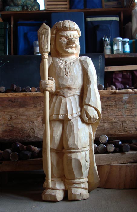 猿田彦が出てきました。これで完成です。手を入れすぎて平凡になることが多いので「未完成」の余韻を残しておきます。しばらくして彫りたしたくなった時手を入れます。この作品は、配信をしている甥が気に入ったと言うので、くれてやろうと思っています。