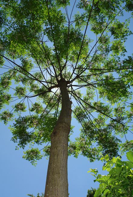わが家の庭のど真ん中におさまっている「栴檀」が開花しました。10数年前小鳥でも運んできたのでしょう自然に芽生えて今では庭の王様です。春には新緑と花を楽しみ 夏には日陰を提供してくれます。秋には黄金色の実をつけ 冬の夜空に美しいシルエットを楽しませてくれます。