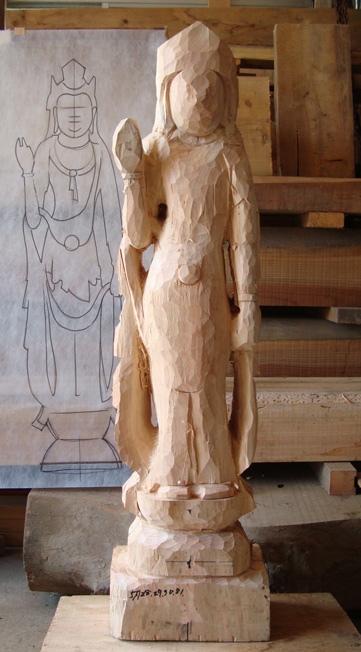 観音像制作中」