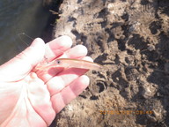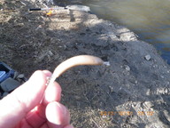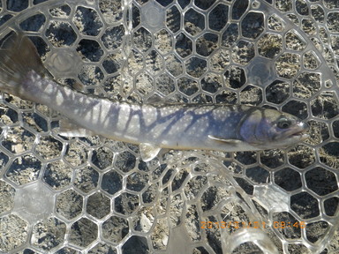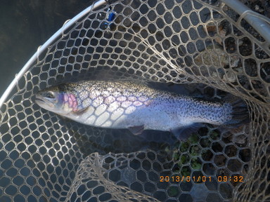 9時10分〜12時、第2ポンド、落水パイプ横、今日も空いてました。やはりどろどろになるのが皆さんいやなのかもしれませんね。水温4.4度、8尾。対面岸際にBUXキャストするといきなり来ました。44,5の良型、ネット印するところをビデオに収めました。今日もニョロ系への反応はよかったのですが、キスバイトが多く、ガブと食いついたのはBUXのほうでした。31日の午後からすると3度下がってますので、これが効いたかな?