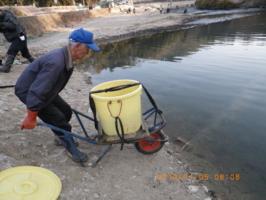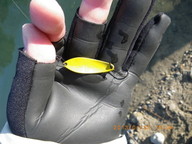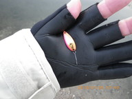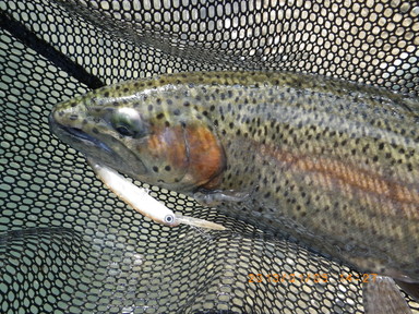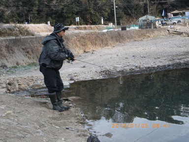 6時30分〜15時、北田原ます釣り場、晴れ、水温計測不可(零下)、11尾。初めて関西の管理釣り場挑戦でした。川をせき止めてフライやルアー、エサと分けてました。川の幅は若栗の対岸よりはかなり短いと思います。遠征という訳ではりませんが短時間の予定でしたのでタックルは2軍、やはり後悔しました。10時ごろの放流までは修行という感じで非常に寒く、ガイドは凍てついたので水中につけたり他いろいろやりながらの釣りになりましたが、放流時に5〜6尾連続で来たので数狙いをやめ、せかっくの関西でしたのでルアーを大物狙いに切り替え、ニョロ系クランクや大きめのスプーンを対岸ぎりぎりにキャストすることにしました。しかしスプーンはともかく軽量クランク系の距離が全く出ず、タックルバランスを大変後悔しました。ご当地色のオレンジや白もポツポツ釣れていたようです。個人的にはミノーへの反応がもう少しほしいところでした。その方が楽しいと思います。次回は一軍持ち込みます。それと私の好きなルアーではもう少し奥の堰の落水ポイントの方が向いていると思いましたが、人が多く入れず、残念でした。