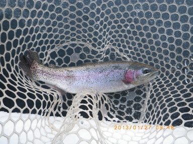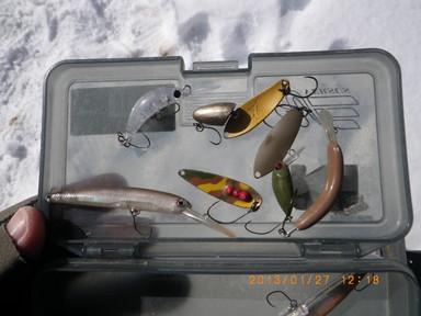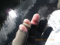 、水温0.4度とこの冬で一番低いと鈴木管理人さんが言ってました。雪は整備されていて道路や入り口は残ってましたが通行に問題なし。ちなみに第1ポンドは放流なし、17尾。寒いので10時以降の陽射しを期待して(21)に入ったのですが、風が強い向かい風。30分間まったく反応なしだったのでNへ移動しました。ここでは軽いルアーの距離が伸びたのでニョロをキャストすると30分で11尾と今日も快調、その後はルアーをいろいろ試したり、なんとかスプーンのきれいな当たりを撮影しようとしたのですが、肝心なときに横風でうまく撮影できず、次回へ持越しです。